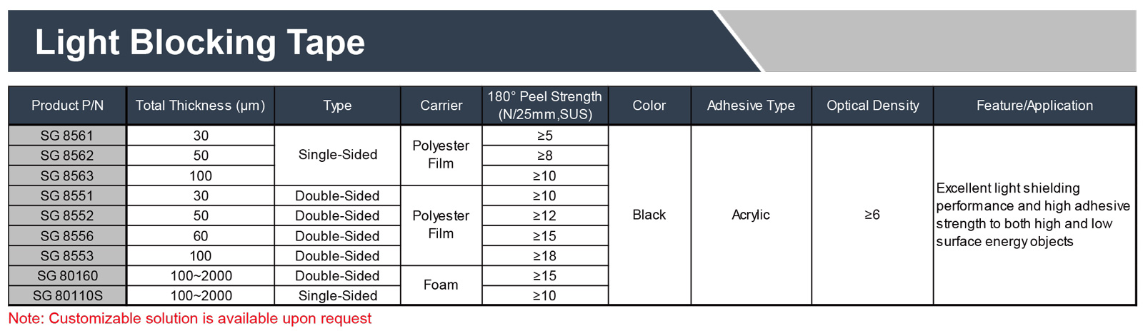 首頁 > 產品 > 膠帶材料 > 膠帶 > 遮光膠帶
