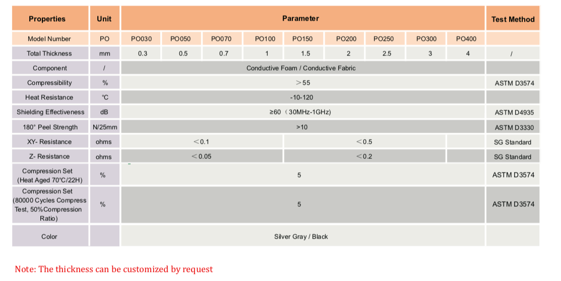 TM PO系列導電泡棉由金屬鍍開孔聚氨酯泡棉和帶有導電壓敏丙烯酸粘合劑的金屬化織物組成。這種高度可壓縮的材料專門設計用于通過X、Y和Z軸提供EMI屏蔽和接地。PO系列基于軟泡棉結構,在寬間隙距離內具有可靠的電氣性能。" />